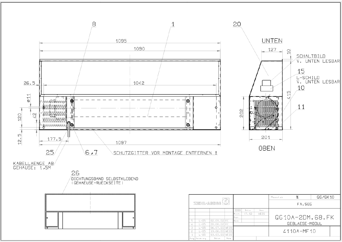 | Ausführung | Querstromgebläsemodul mit Gehäuse und Drehstrommotor |