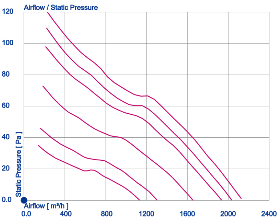 Volumenstrom qv, max. (bei PsF = 0 Pa) [m³/h] | 2100 |