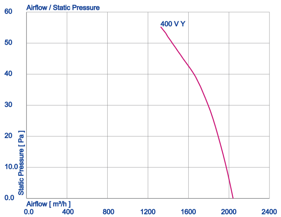 | Max. volume flow qv, (where psf = 0 Pa) [m³/h] | 2050 |