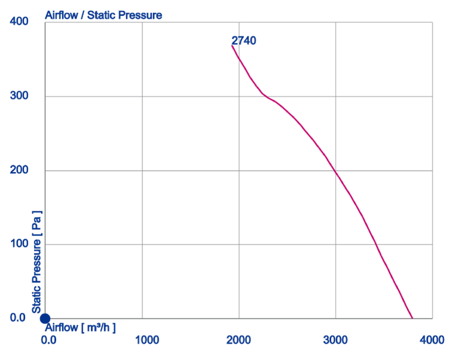 | Max. volume flow qv, (where psf = 0 Pa) [m³/h] | 3750 |