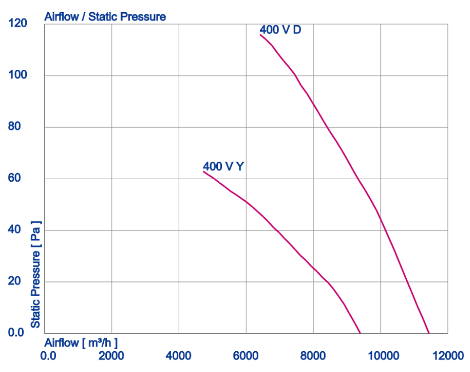 | Max. volume flow qv, (where psf = 0 Pa) [m³/h] | 11400 |