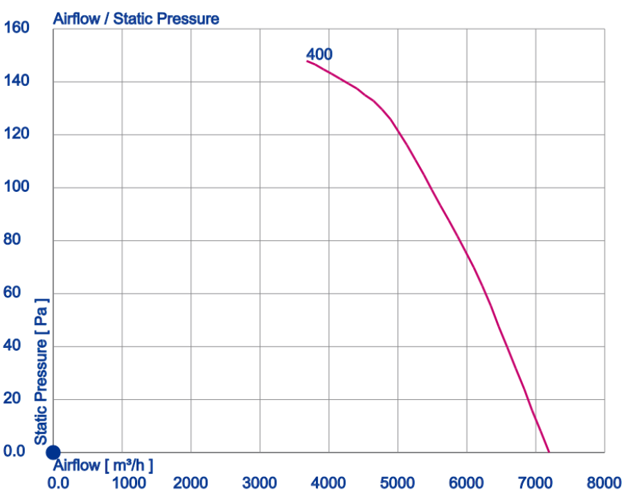| Max. volume flow qv, (where psf = 0 Pa) [m³/h] | 7200 |