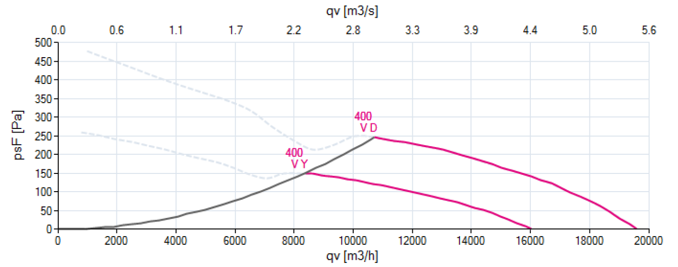 | Max. volume flow qv, (where psf = 0 Pa) [m³/h] | 19500 |