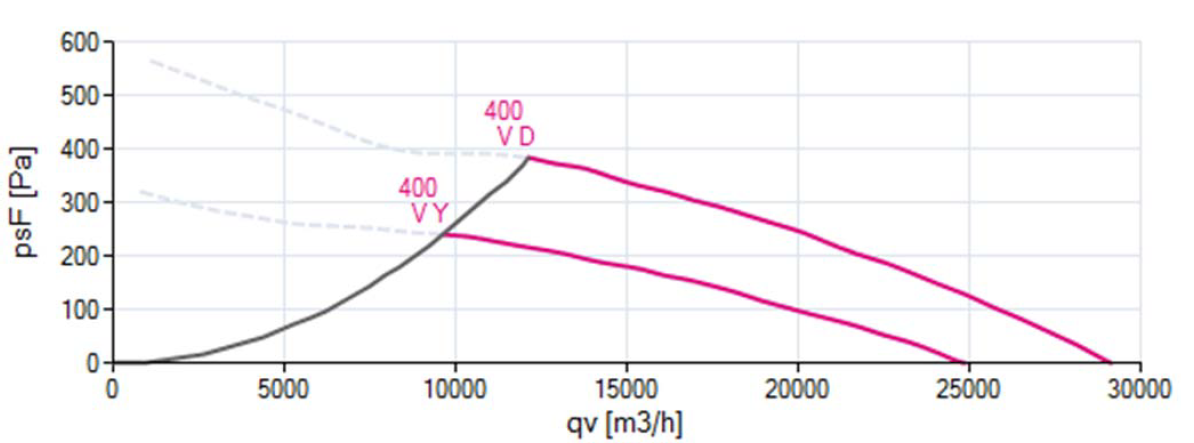 | Max. volume flow qv, (where psf = 0 Pa) [m³/h] | 28500 |