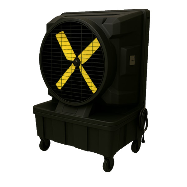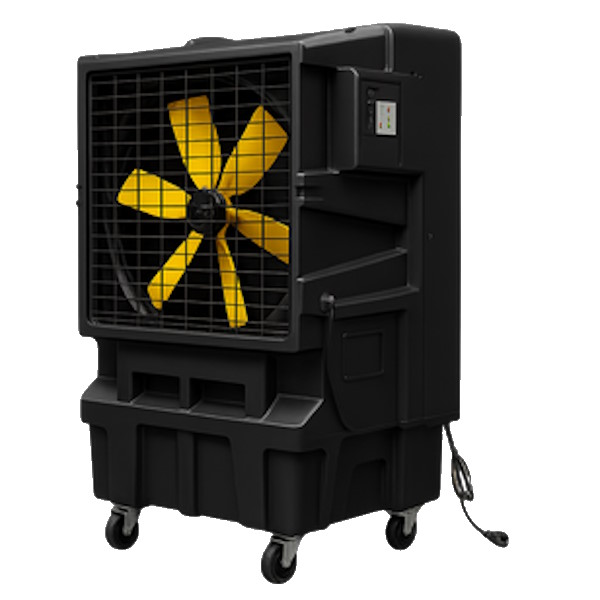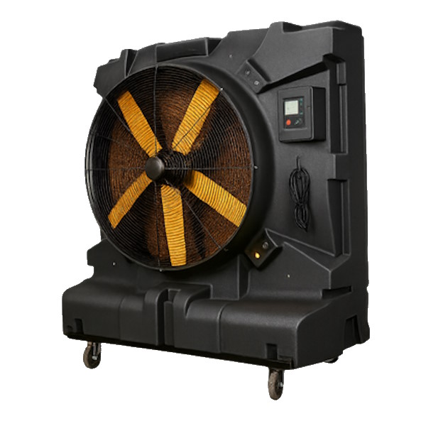 Die adiabatischen Luftkühler von KALTERMANN haben je nach Modell einen Luftdurchsatz von 12.000 bis über 30.000 m³/h, wobei der Luftstrom durch Lamellen manuell in vertikaler Richtung eingestellt werden kann. Um einen Bereich noch weiträumiger zu kühlen, verfügen die Geräte zudem über motorisch angetriebene Lamellen in horizontaler Richtung (Oszillationsmodus). Die Bedienelemente des mobilen Luftkühlers befinden sich auf dem integrierten ergonomischen Bedienfeld. Alle Geräte werden zusätzlich mit Fernbedienung geliefert.